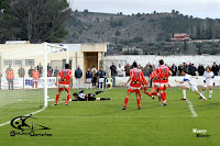 desbaratar todos los planes, por su parte los Moratalleros tampoco se conformaban con el resultado, su posición en la tabla es muy delicada y eso les hacía buscar los tres puntos, pero los goles no obstante se hacían esperar porque el juego no tenía continuidad, continuos arreones de unos y otros y fue el Caravaca el primero en abrir la lata, lanzamiento de esquina desde la parte izquierda, el balón no encuentra rematador en primera instancia pero en el segundo palo se encontraba Aarón libre de marca que de cabeza envía la pelota al fondo de las mallas; son momentos de dominio local, los visitantes tienen que replantearse el encuentro, y por su parte Miguel Rivera también tiene claro que hay que mover el banquillo, el primer